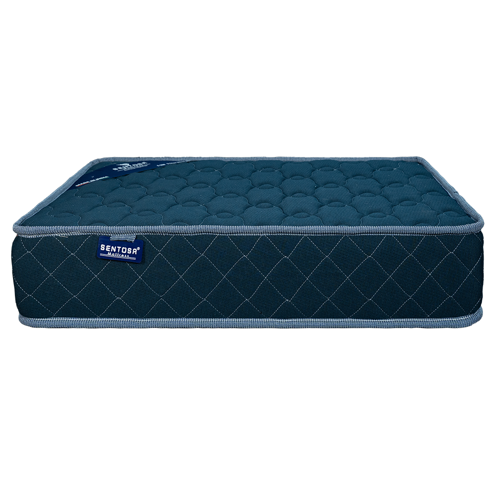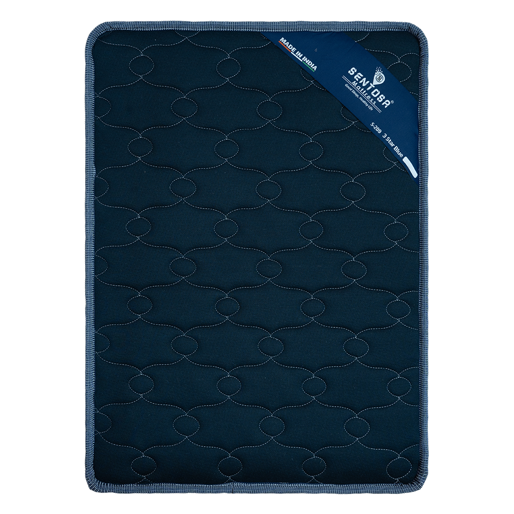 At its core, a 3″ (75 mm) premium foam with 40 density delivers lasting firmness and structure. The base is finished with a 5 mm foam quilted antiskid fabric, keeping the mattress securely in place. Ideal for those seeking medium-firm comfort with layered cushioning, the Sentosa 3 Star Blue offers a restful night’s sleep every time.