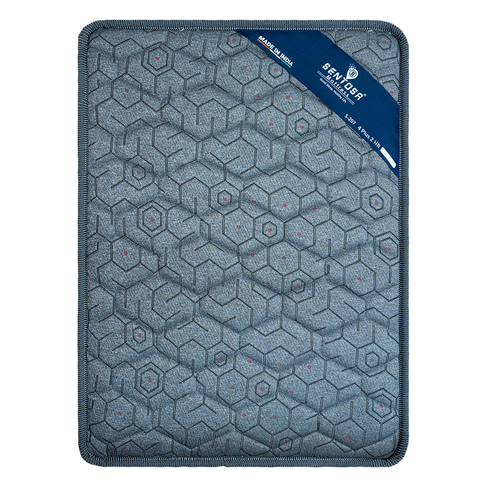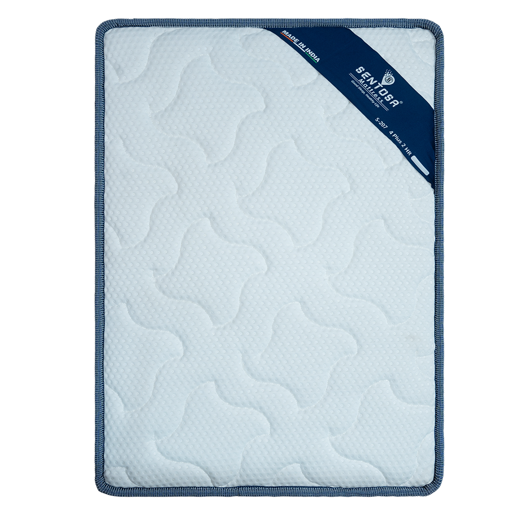 The Sentosa 4 Plus 2 HR Mattress is a premium dual-layer comfort solution designed to deliver superior support and luxurious sleep. It features a soft 20 mm foam quilted jacquard fabric top that ensures a plush, breathable surface, followed by a 2-inch (50 mm) high-resilience (HR) foam with 32 density for ergonomic support and pressure relief.