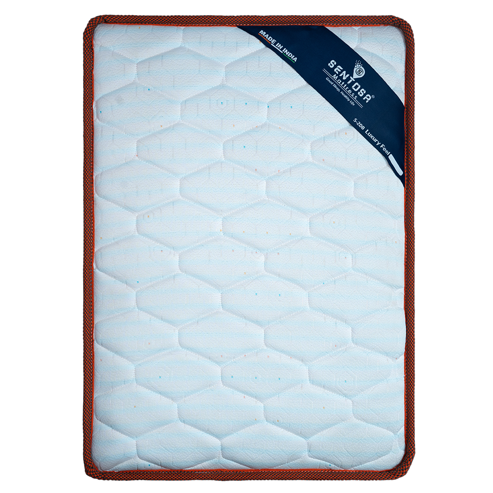 The Sentosa Luxury Feel (2.0) mattress is expertly designed to deliver the perfect blend of comfort, support, and elegance. Its top layer features a 20 mm pure foam quilted jacquard fabric that adds a smooth, breathable touch for enhanced sleeping comfort. The 2-inch (50 mm) 5-zone profile silky foam (35 density) layer provides adaptive cushioning, ensuring personalized pressure relief across different body zones for a relaxing sleep experience.
