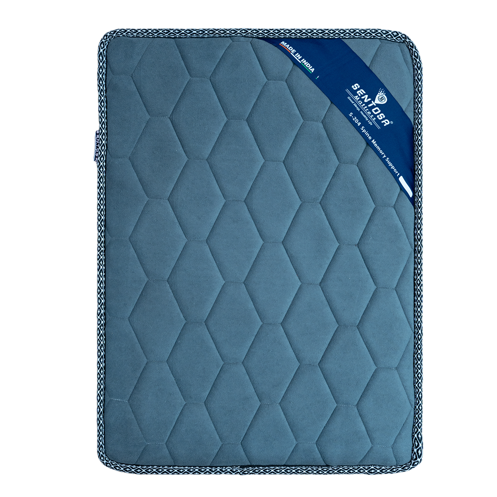 Sentosa Spine Memory Support is designed to elevate your spine health while delivering cloud-like comfort. The top layer features a luxurious 20 mm quilted polar fabric made with foam and Recaron for a soft, breathable touch. A 1″ (25 mm) high-density (65) memory foam gently contours to your body, relieving pressure and supporting natural alignment. Beneath that, a 2″ (50 mm) HR foam with 40 density provides responsive bounce and added cushioning.